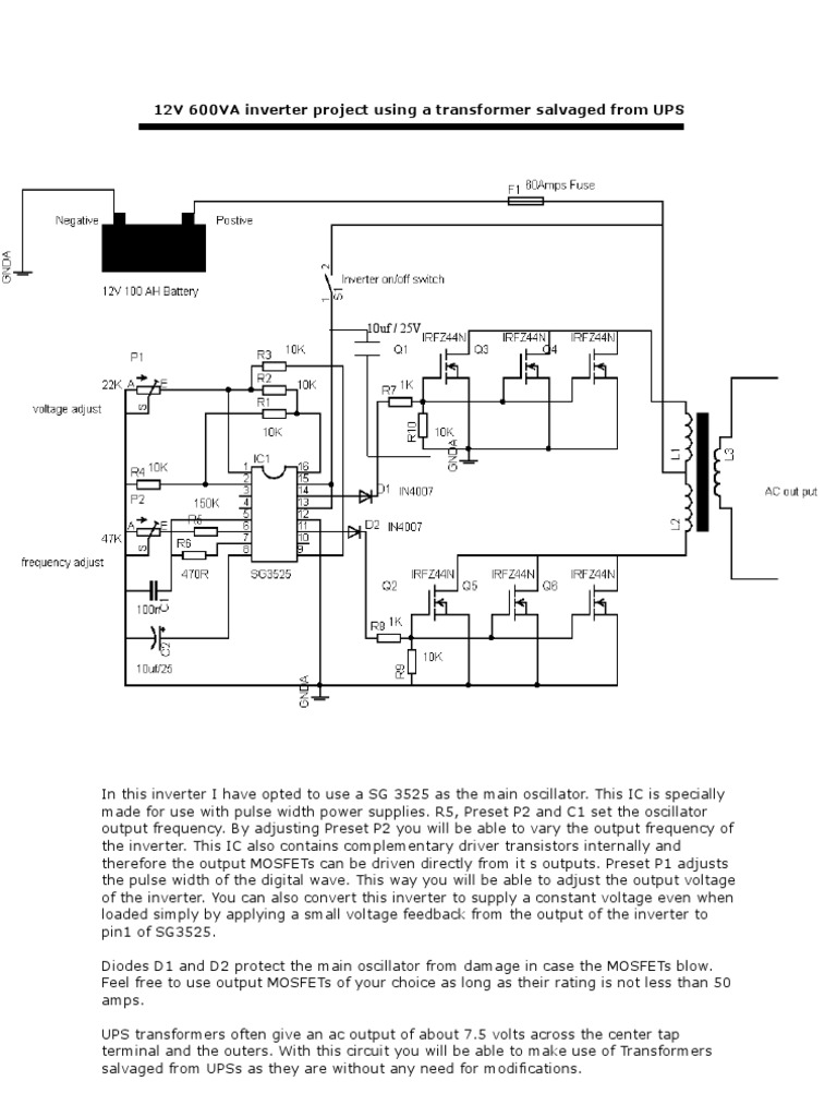 Sine wave inverter circuit diagram with full explanation.